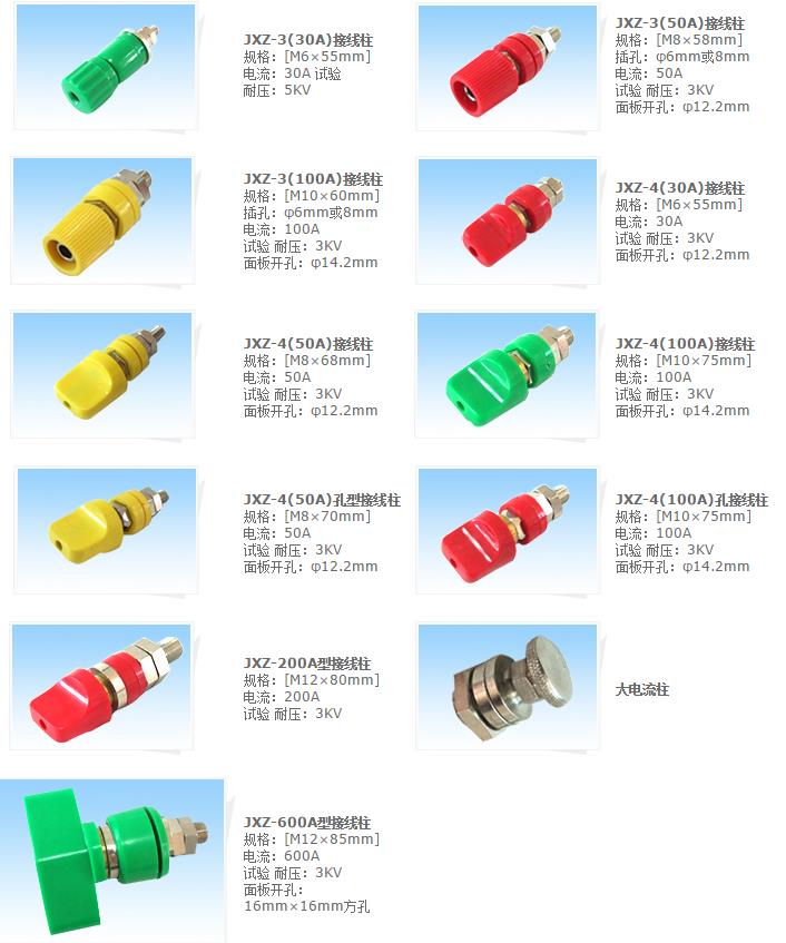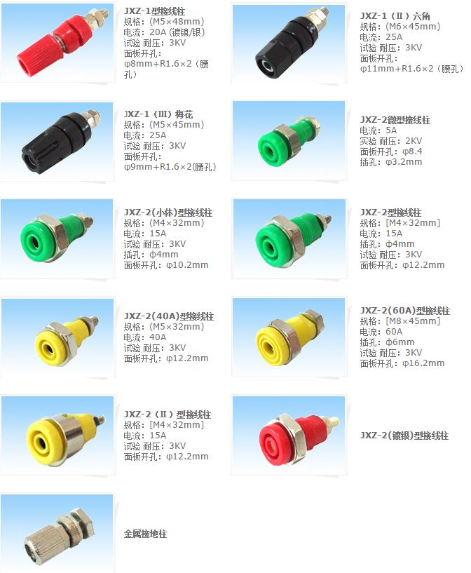 JXZ系列接線柱用途:主要適應(yīng)于儀器、儀表、校驗臺、控制臺等設(shè)備配套使用,具有便利操作,連接迅速方便,接觸良好,試驗效