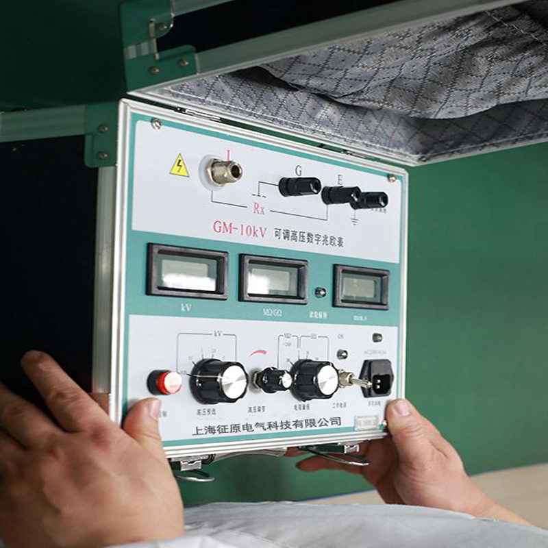 4、測(cè)試電源的電壓范圍寬廣,可選擇0.25、0.5、1、2.5、5、10、15kV,也可從0V平滑調(diào)起連續(xù)調(diào)節(jié)到需要的電壓。