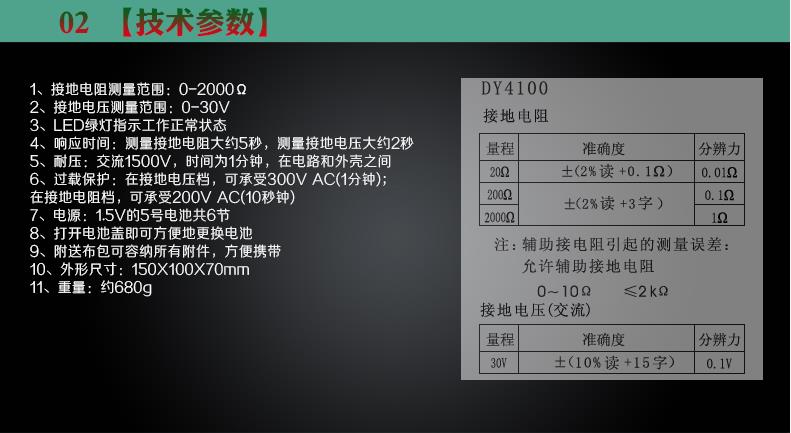 二、DY4102電子式指針接地電阻測試儀技術(shù)指標(biāo):
